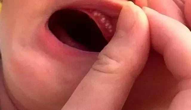 在新生寶寶口腔的上腭中線附近會(huì)看到針頭或米粒大小的灰白色小點(diǎn),叫上皮珠,上皮珠是細(xì)胞脫落不完全所致;在寶寶牙齒牙齦邊緣也會(huì)有白色小珠或灰白色硬塊,看起來(lái)好像萌出的牙齒,俗稱“板牙”或“馬牙”。上皮珠和馬牙對(duì)寶寶沒(méi)有任何不良影響,不必做任何處理,會(huì)自然消失。